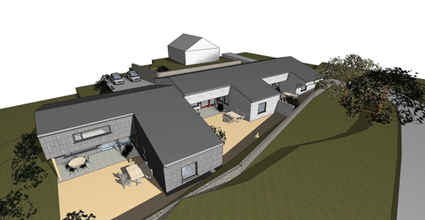 BKE hadde her ei tomt godt plassert i sentrum, som fekk plass til 3 nye bustadar med hhv. 2 soverom, 3 soverom og 4 soverom med loftsstove.